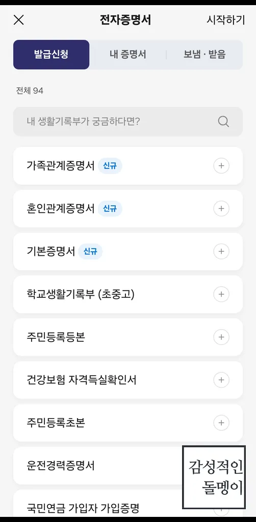 '전자문서' 메뉴에는 다양한 정부 및 공공기관의 증명서가 있는데요.