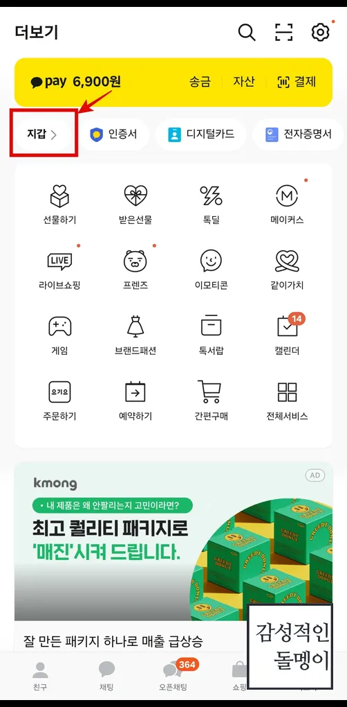 1️⃣ 카카오톡 실행 후 '지갑' 메뉴 접속