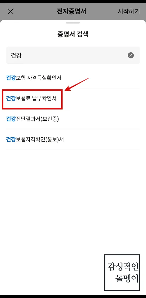 2️⃣ '전자문서'에서 건강보험 관련 문서 선택