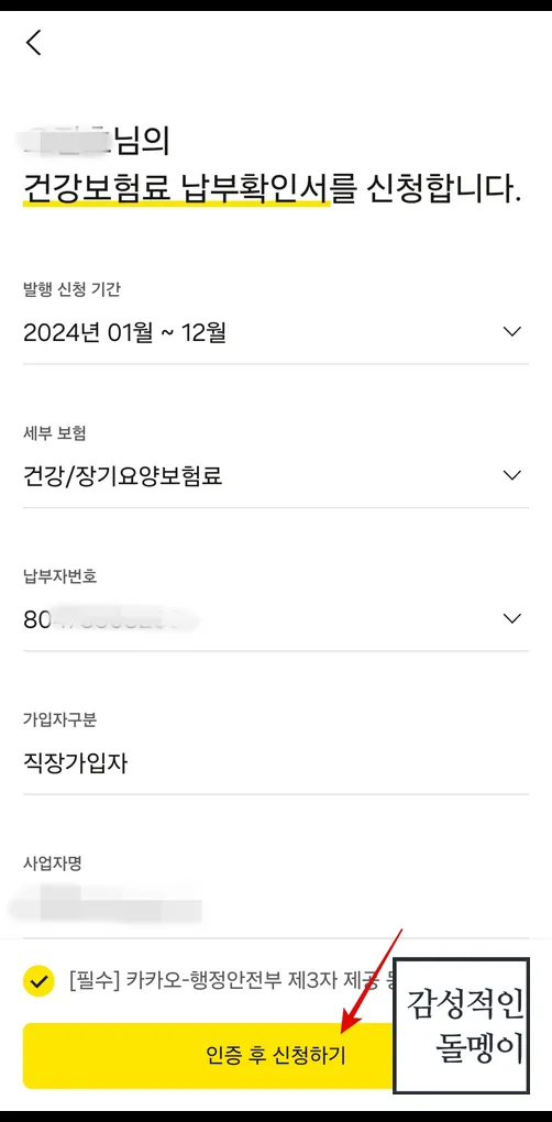 예전에는 건강보험공단 홈페이지에 로그인하고, 공인인증서를 찾고, 프린트까지 해야 해서 10~15분은 걸렸어요. 그런데 카카오톡 지갑을 이용하면 3분이면 끝! 심지어 출력 없이 모바일로 제출할 수 있으니 정말 편리했어요.