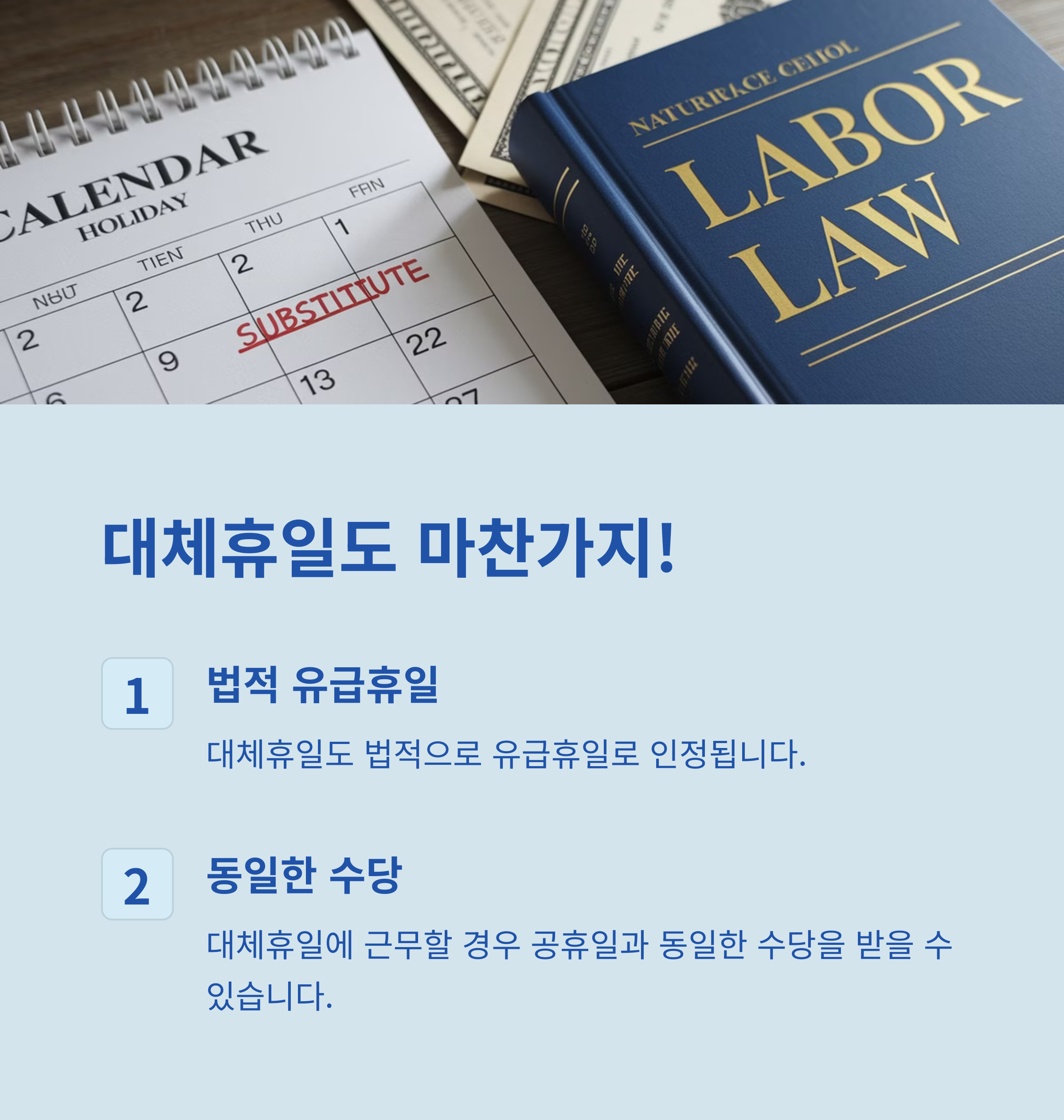 즉, 공휴일이든 대체휴일이든, 휴일에 근무하면 추가 수당이 발생합니다! 💡