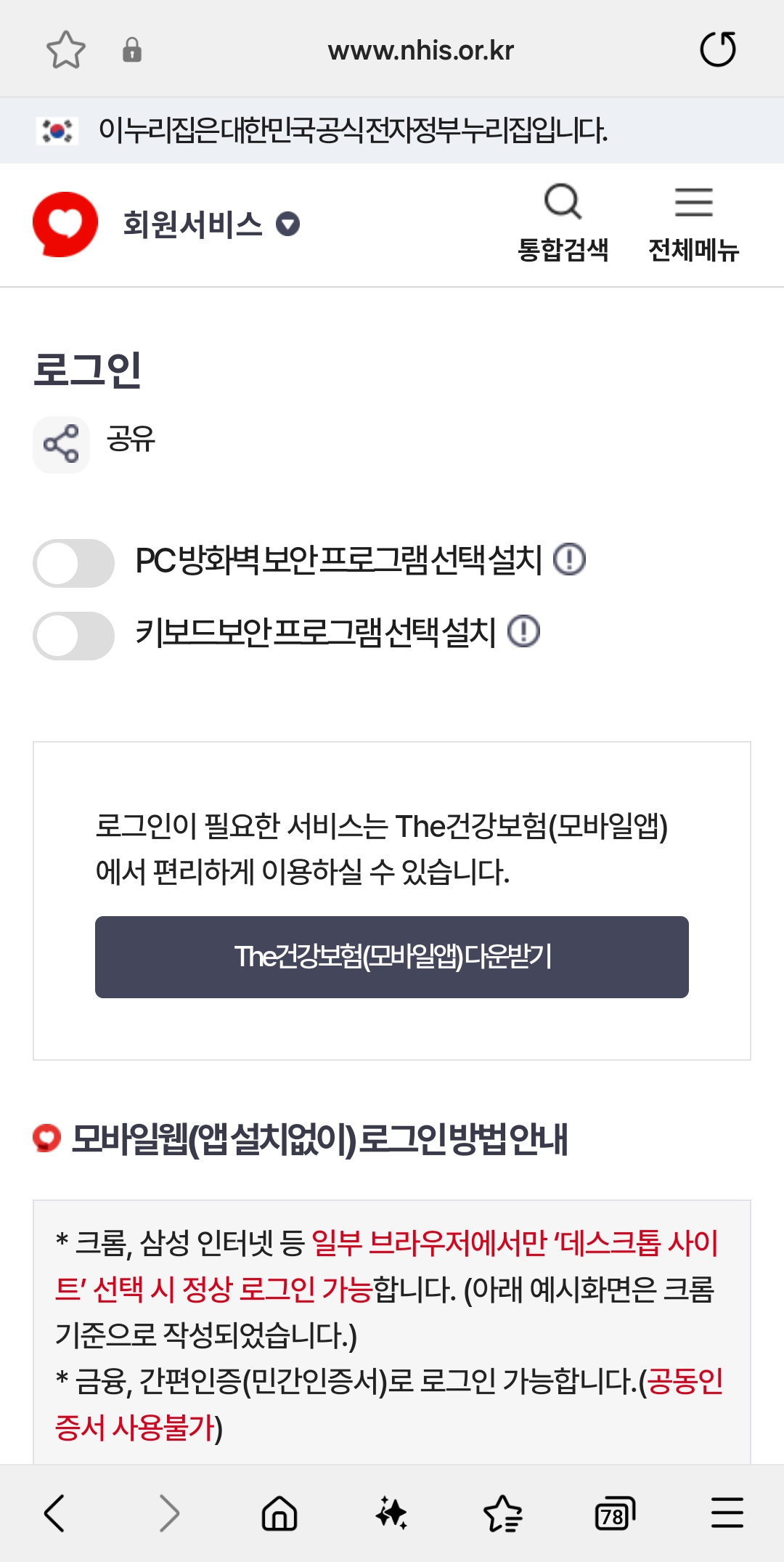 - 국민건강보험공단 홈페이지 로그인