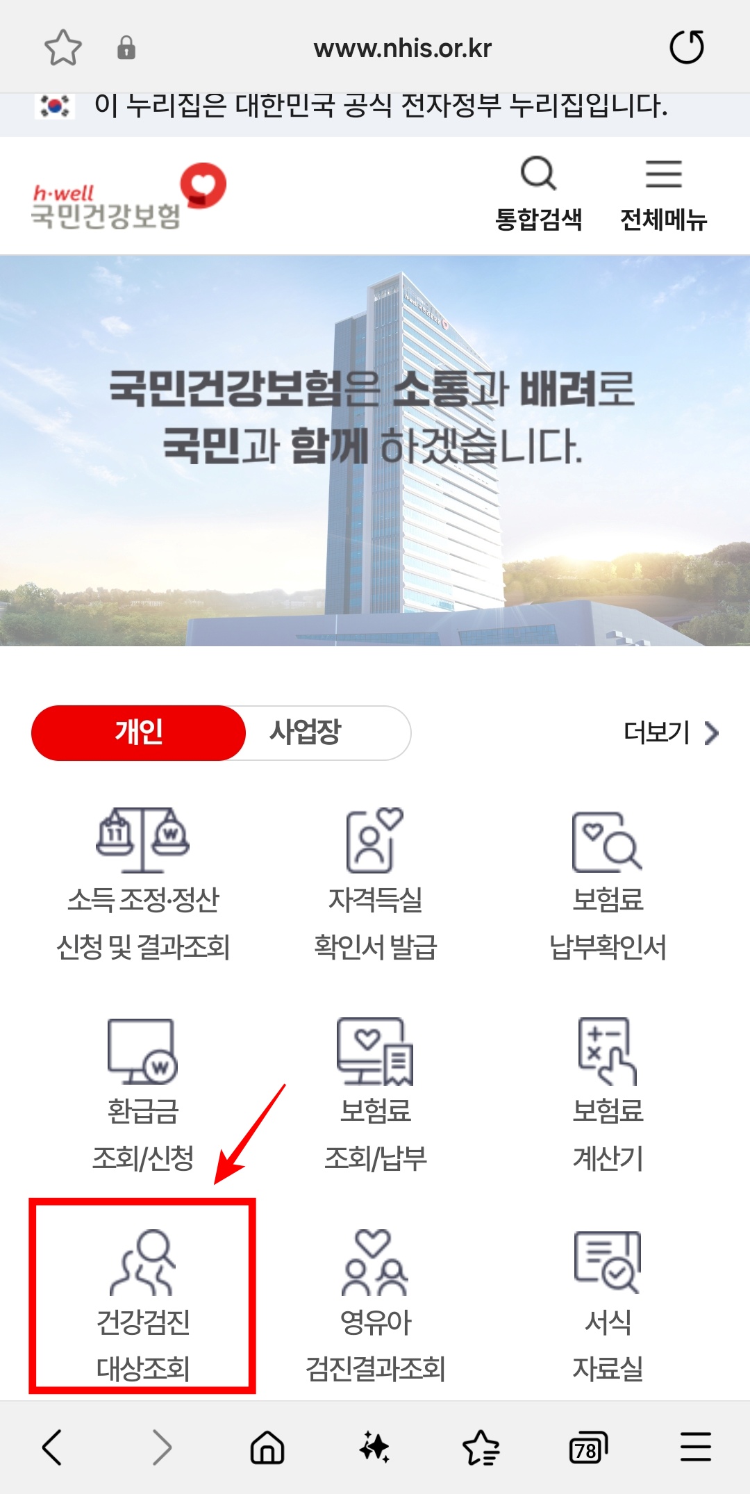 국민건강보험공단 홈페이지에서 찾기