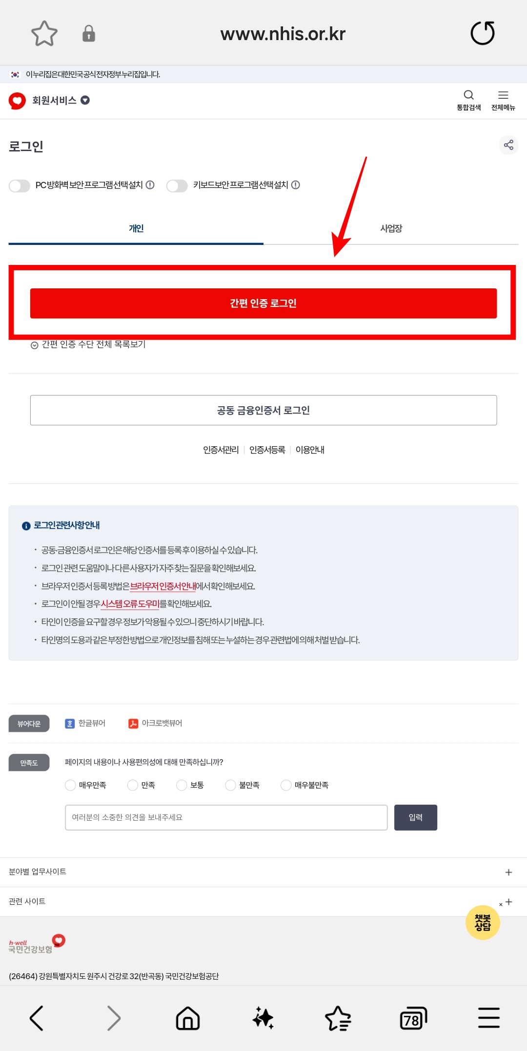 - 국민건강보험공단 홈페이지(https://www.nhis.or.kr) 방문