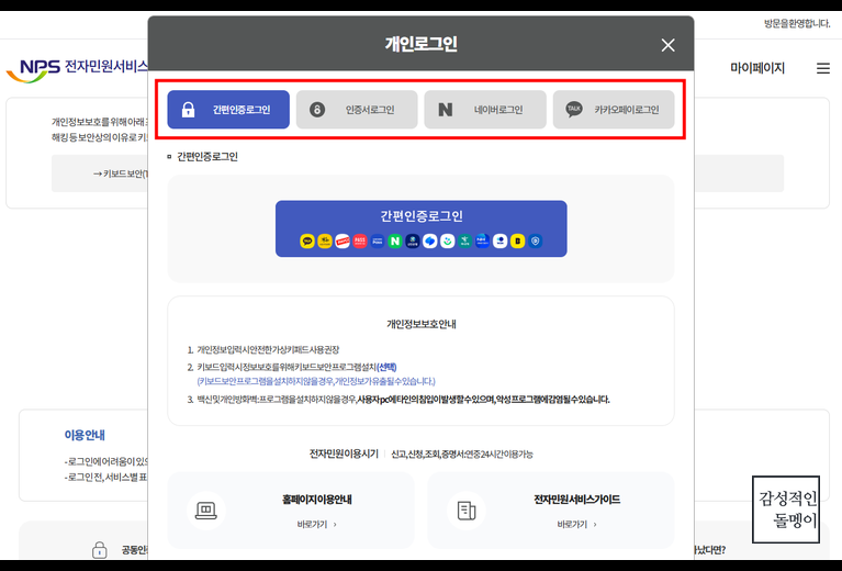 저는 공동인증서보다 카카오톡을 이용한 간편인증로그인을 선호합니다.