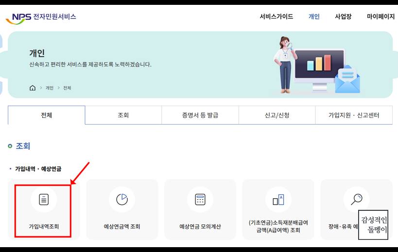 3. 국민연금 가입내역 확인하기
