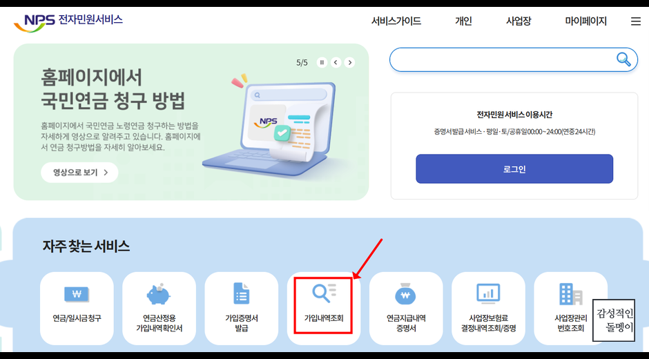 - 국민연금공단 홈페이지 접속