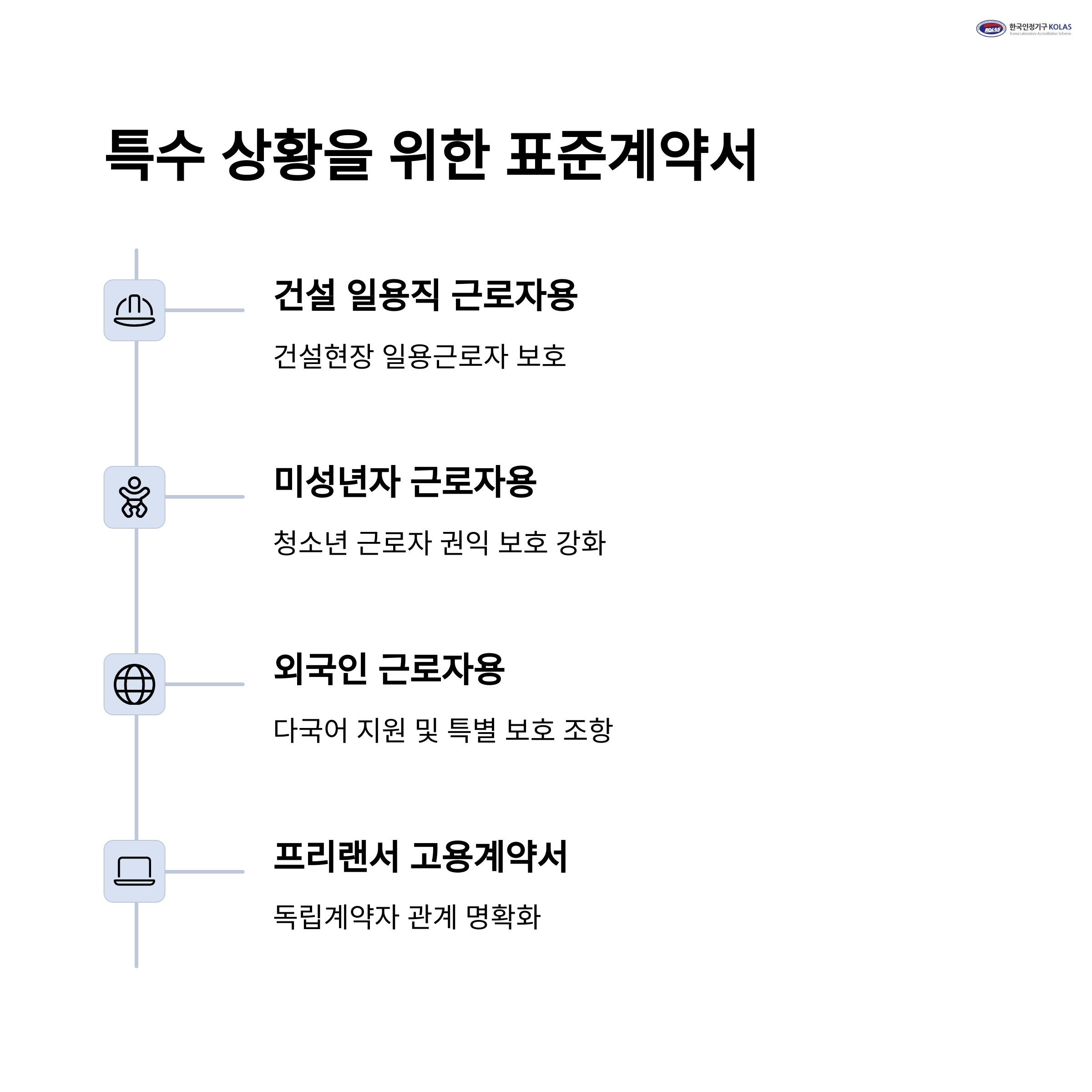 고용노동부에서는 다양한 근로 형태에 맞춘 7종의 표준근로계약서 양식을 제공하고 있습니다.