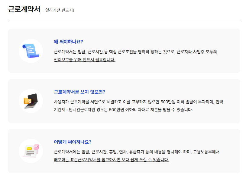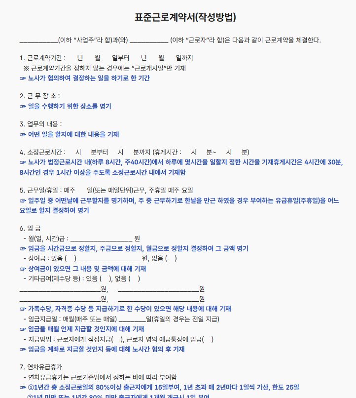 정리하면서 고용노동부의 표준근로계약서를 공유드릴게요. 더 자세한 내용은 아래의 링크를 통해 확인하세요.