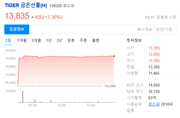 대표적인 상품으로는 KODEX 골드선물(H), TIGER 금은선물 등이 있어요.