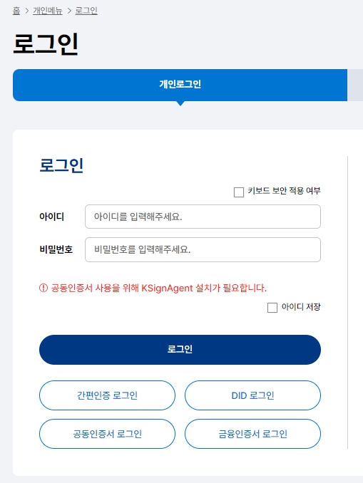 발급 신청을 위해서는 반드시 로그인이 필요합니다. 큐넷에 회원가입이 되어 있지 않다면, 먼저 회원가입을 완료한 후 로그인을 진행하세요.- 개인 로그인 또는 간편 인증(공동인증서, 카카오 인증 등)을 통해 로그인할 수 있습니다.
