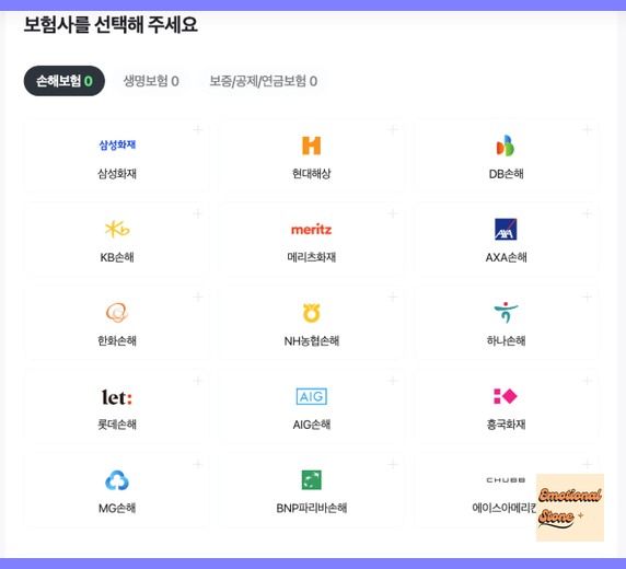 - 보험사 선택: 제가 가입한 보험사 이름이 목록에 바로 뜨더라고요. 클릭 한 번으로 선택 끝!