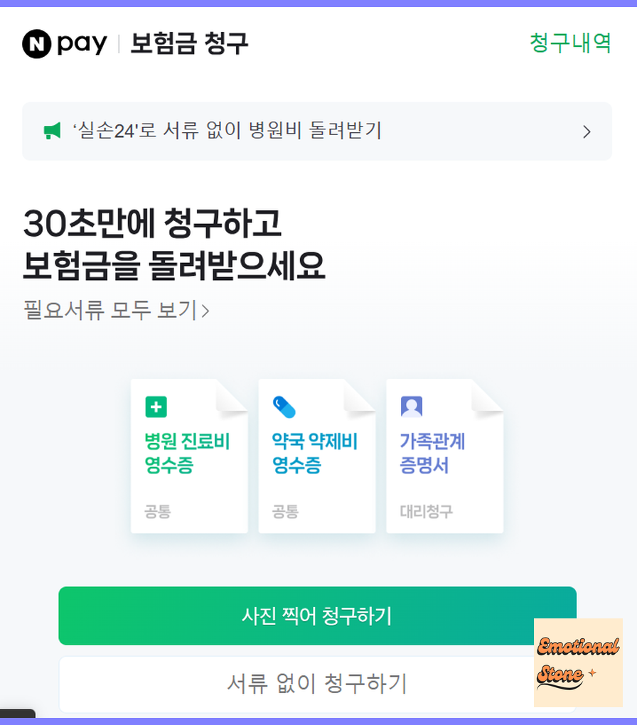 - 사진 찍어 청구하기: 병원에서 받은 영수증과 서류를 촬영해 제출하는 방법