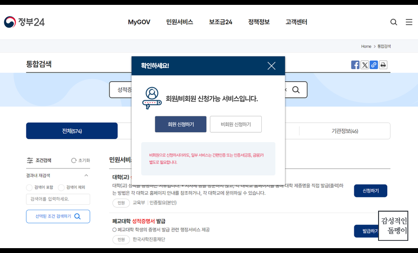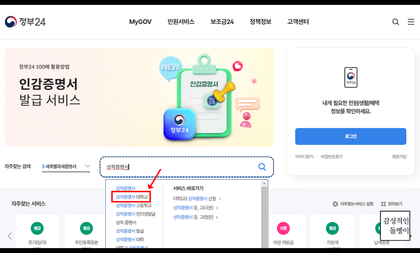 정부24를 통해 성적증명서를 발급받을 수 있습니다. 절차는 다음과 같습니다.