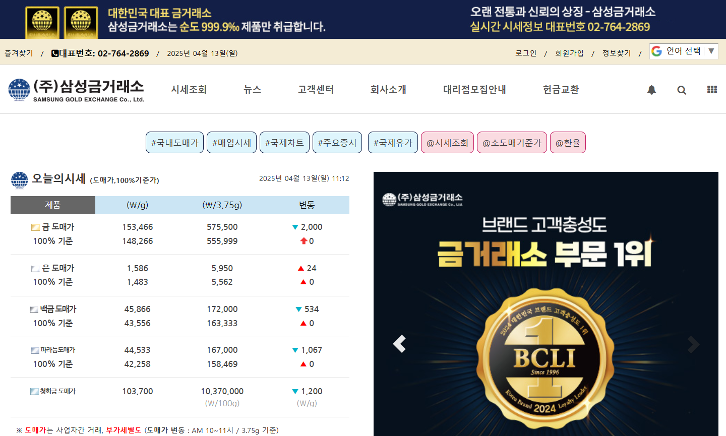 국내 대표적인 금거래소로, 순금, 18K, 14K 등 다양한 금 시세를 실시간으로 제공합니다. - 삼성금거래소