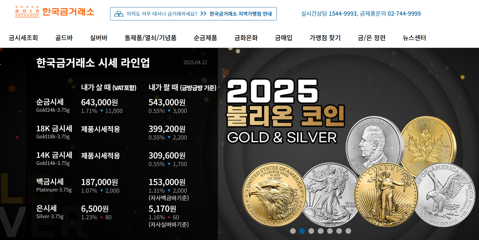 금 가격 조회 및 시장 동향을 확인할 수 있으며, 일자별 가격도 제공합니다.