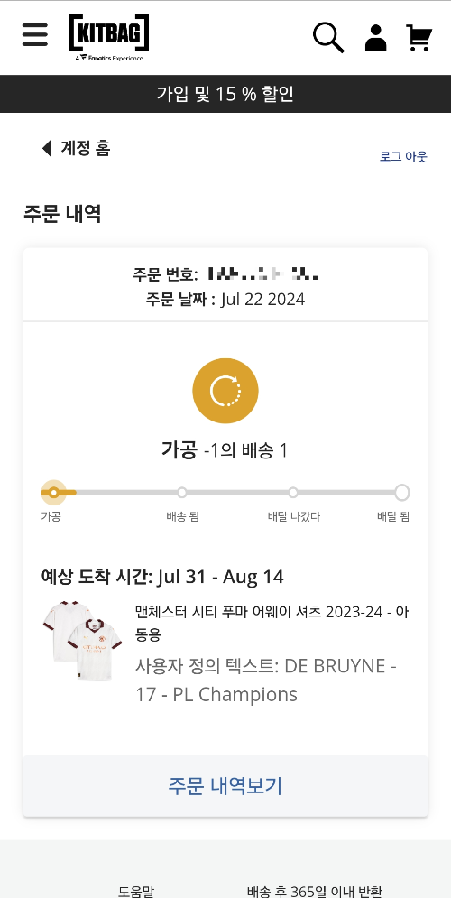 배송비를 아끼고자 여자친구와 같이 킷백에서 유니폼을 구매하고 싶었으나 남성 사이즈가 없어 오프사이드에서 리그 패치와 홀란드 선수 마킹을 추가하여 맨시티 유니폼을 구매하였습니다.