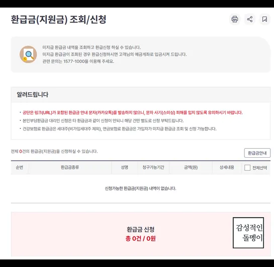 환급금 지급을 위해 반드시 신청 절차를 거쳐야 합니다.