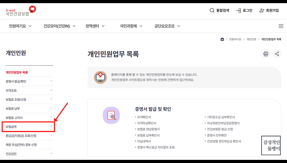 1. 국민건강보험공단 홈페이지에 접속합니다. 🌐