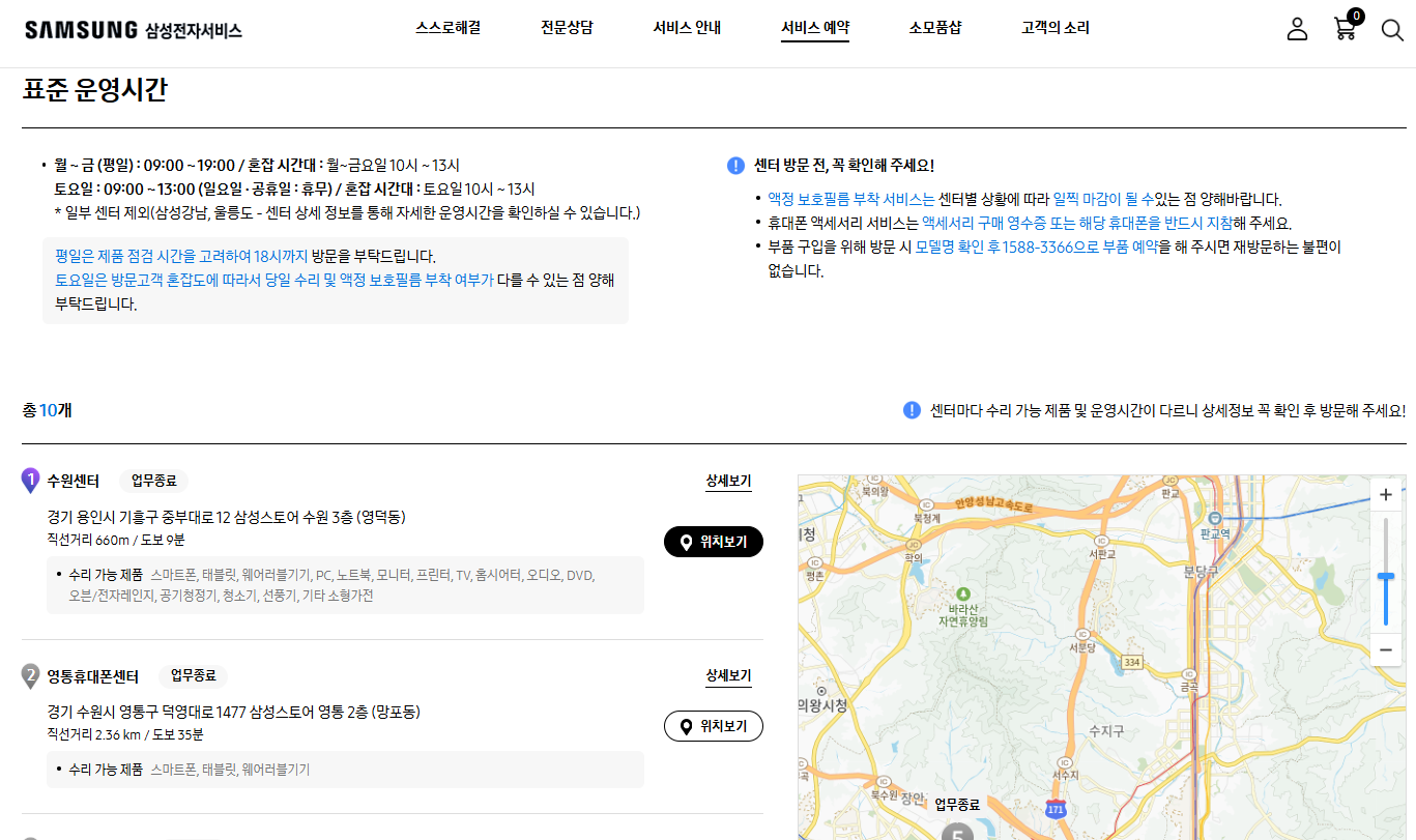 🧭 삼성전자 서비스센터 찾기