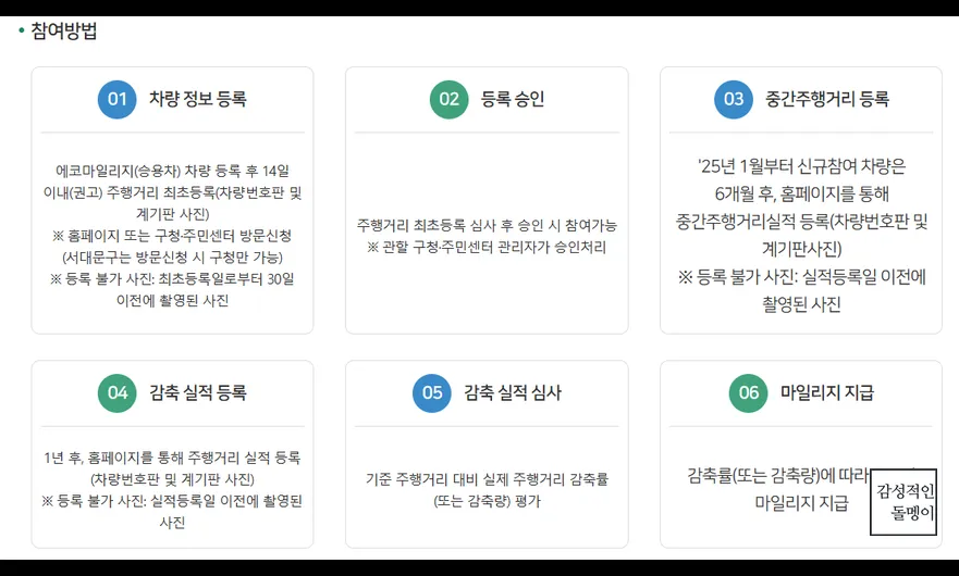 ✔️ 2025년부터 신규 참여자는 6개월 후 중간 주행거리 등록 필요