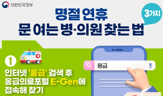 - 네이버지도: 검색창에 "명절 병원" 또는 "명절 약국"을 입력해보세요.