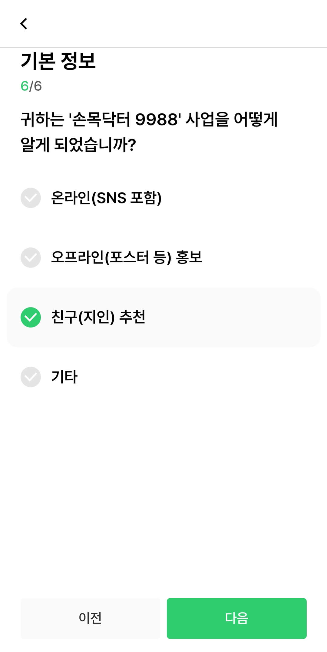1. 손목닥터9988을 설치하여 회원가입을 진행합니다.