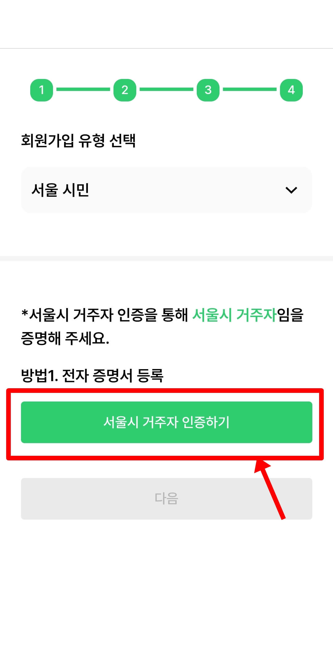 2. 서울시 거주자 인증 후, 걸을 수를 측정 기기를 선택하여 회원 가입을 완료합니다.
