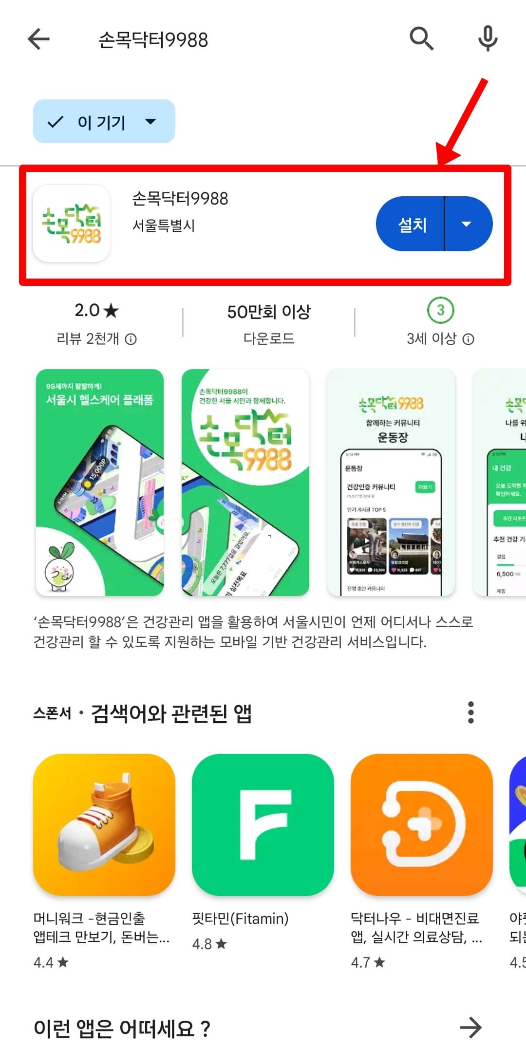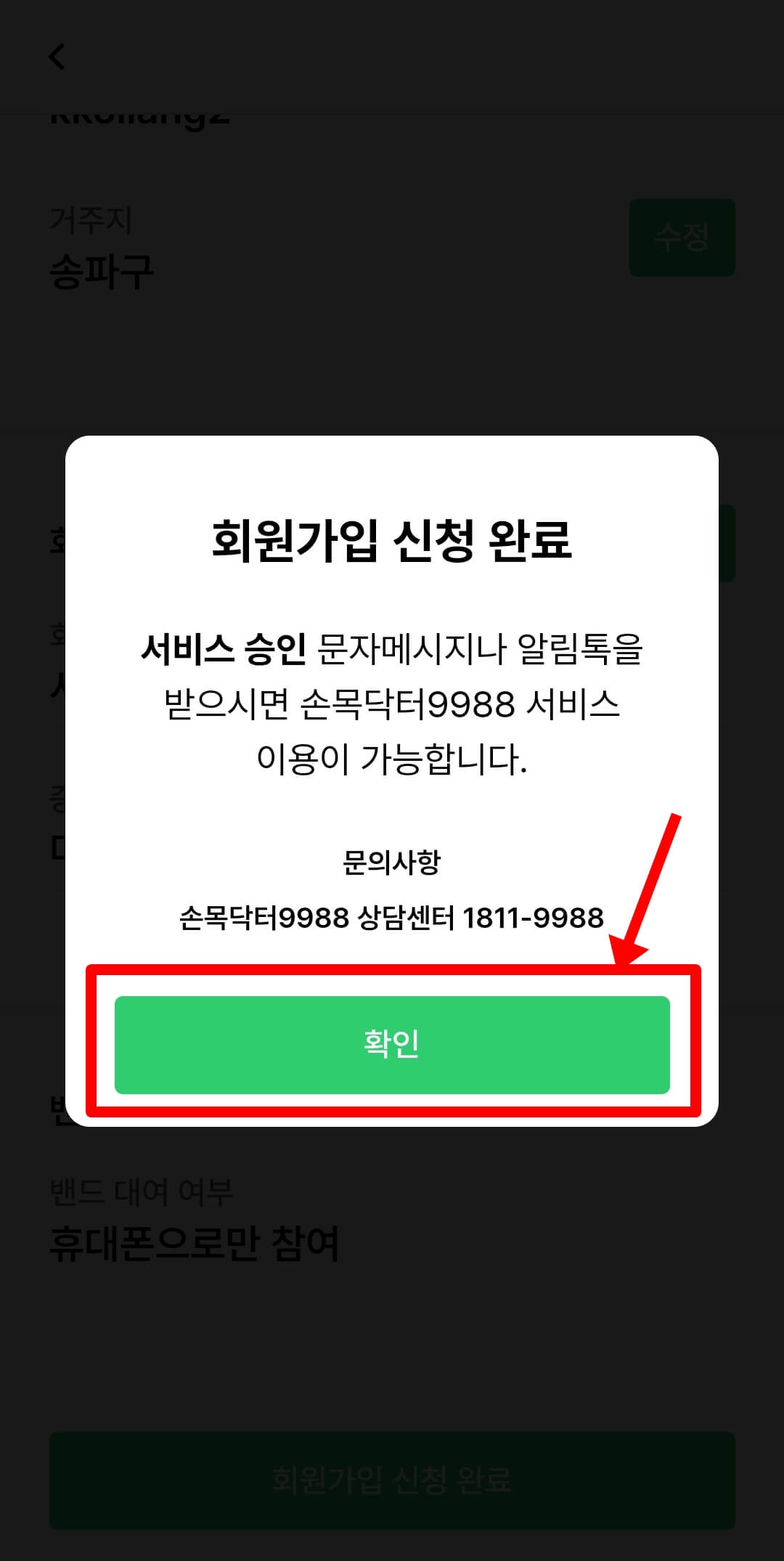 1. 손목닥터9988을 설치하여 회원가입을 진행합니다.