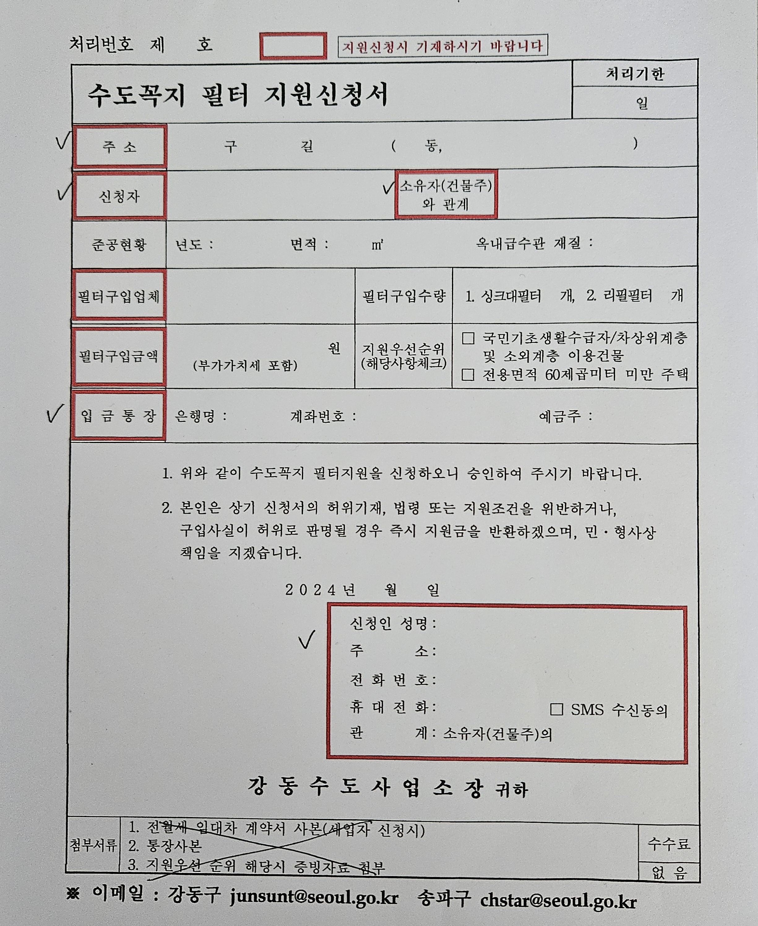 필터 지원 신청서 작성