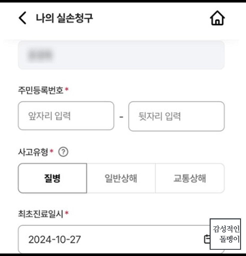 - 성명, 주민등록번호, 사고 유형, 최초 진료일자 입력