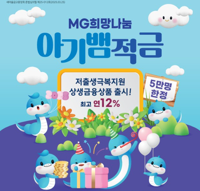 새마을금고에서 출시한 아기뱀적금은 최대 연 12% 금리 혜택, 저출산 시대에 꼭 필요한 '찐 혜자' 적금 상품이에요.