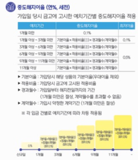 중도해지 시에는 우대금리 혜택이 사라지고 기본금리보다 낮은 수준으로 조정될 수 있어요. 가급적 만기까지 유지하세요.