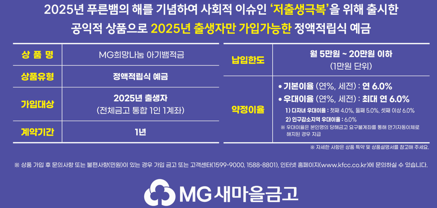 요즘 저출산 문제로 고민하시는 분들 많으시죠? 아이를 키우는 데 드는 비용과 미래에 대한 불안감이 커지면서 출산을 미루거나 포기하는 가정이 늘고 있어요. 이런 상황에서 새마을금고의 '아기뱀적금'은 다자녀 가정과 인구감소지역 출생아를 위한 특별한 금융 상품으로 주목받고 있습니다.