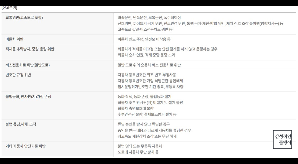 - 신고 대상: 횡단보도, 소방시설 주변, 교차로 모퉁이 등 불법주정차가 금지된 구역