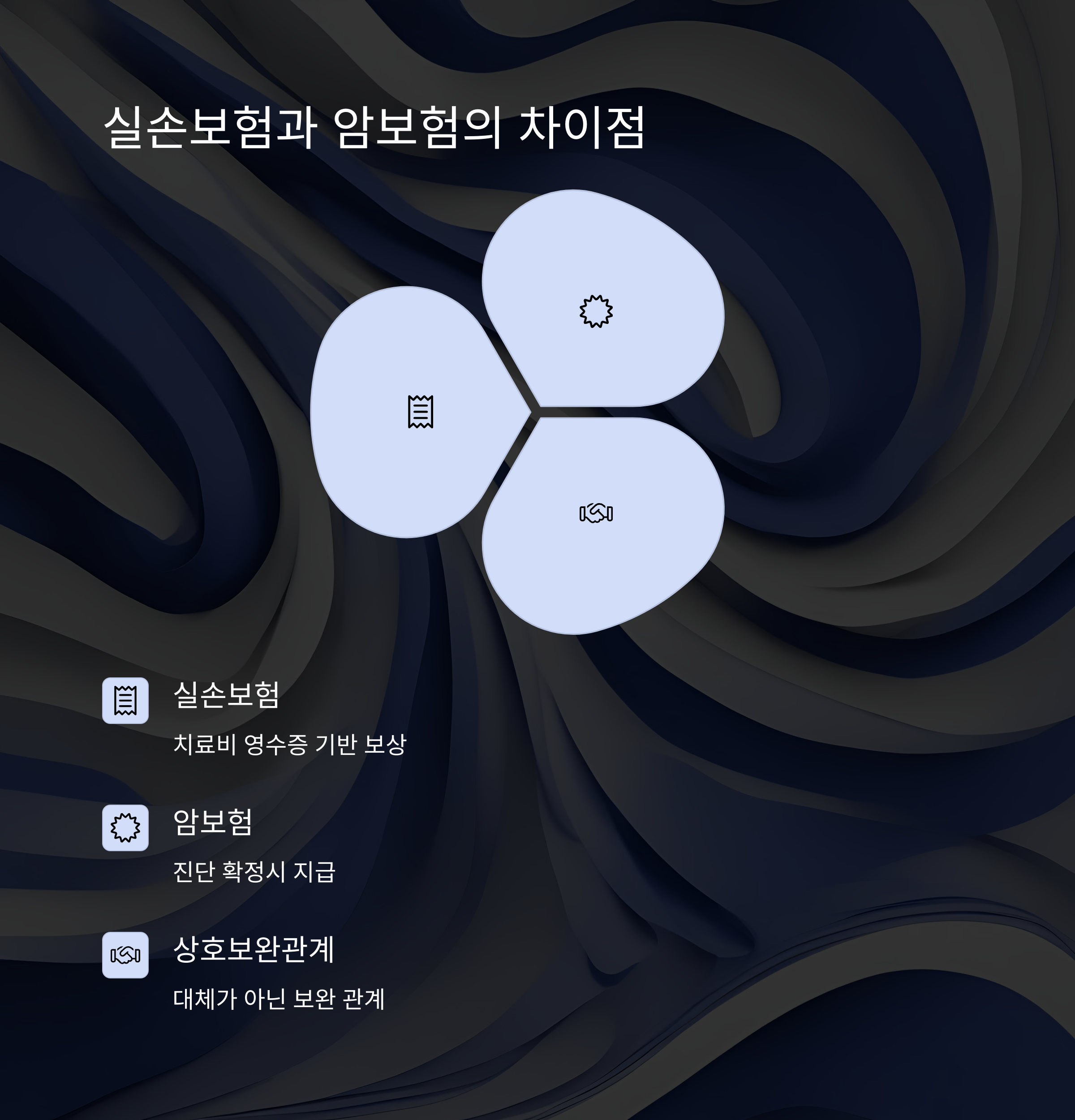 많은 분들이 실손보험만 있으면 되지 않냐고 물으시는데요! 실손보험은 '치료비 영수증 기반'이지만, 암보험은 '진단 확정시 지급'됩니다.