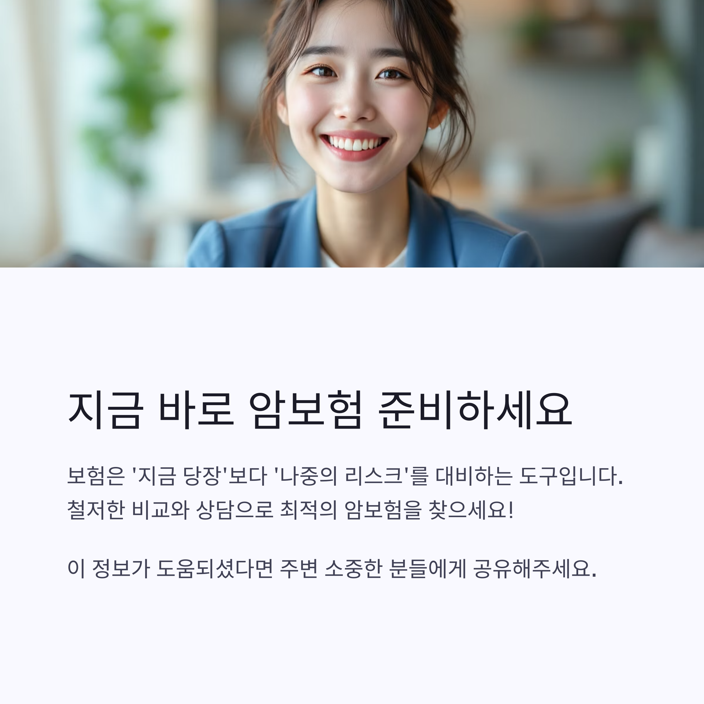보험은 '지금 당장'보다는 '나중의 리스크'를 대비하는 도구이기에, 철저한 비교와 상담이 정말 중요해요!