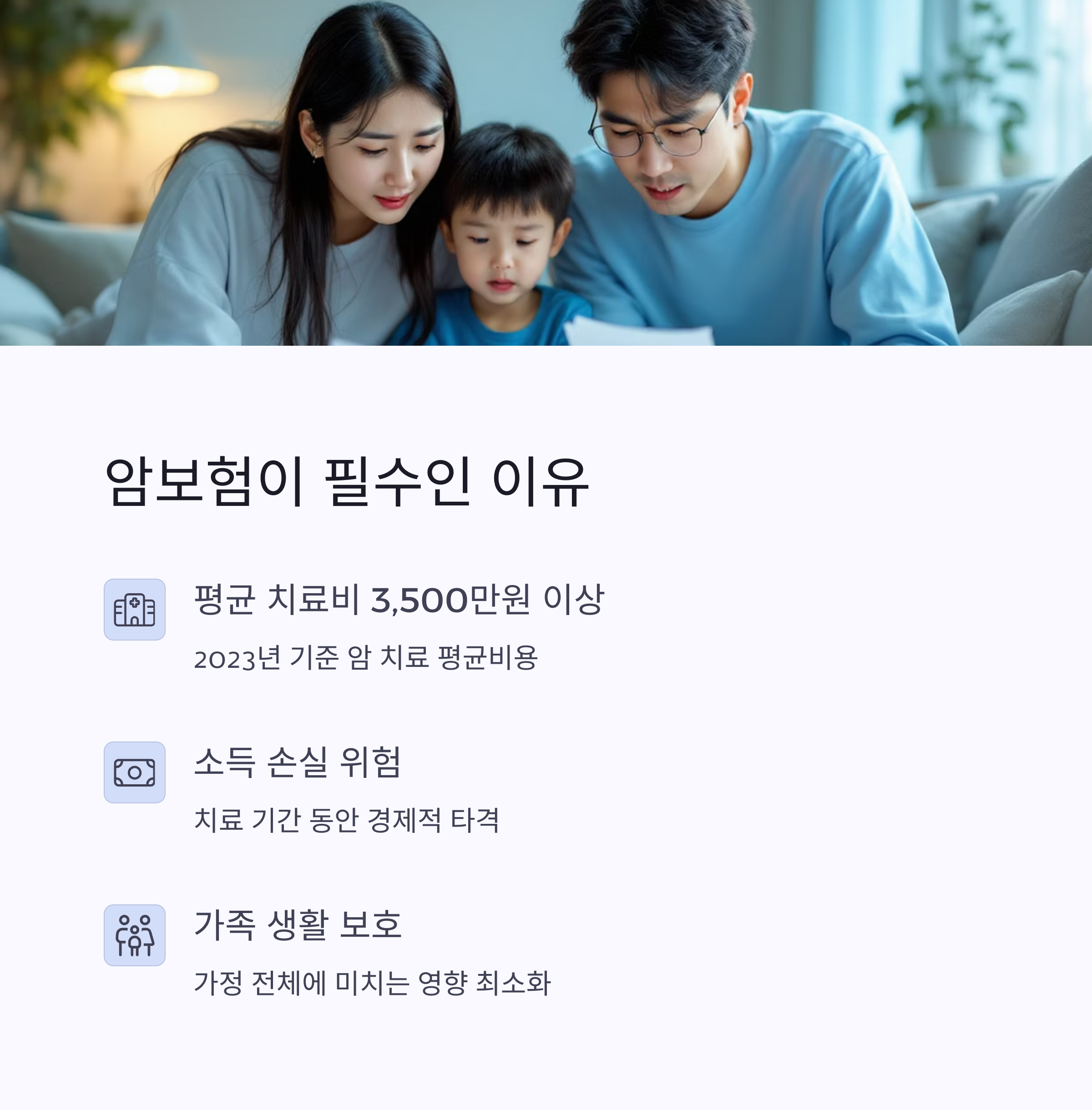 특히 가족이 있다면, 본인 한 명의 병이 가정 전체에 영향을 미칠 수 있으니 조기 준비가 필수입니다.