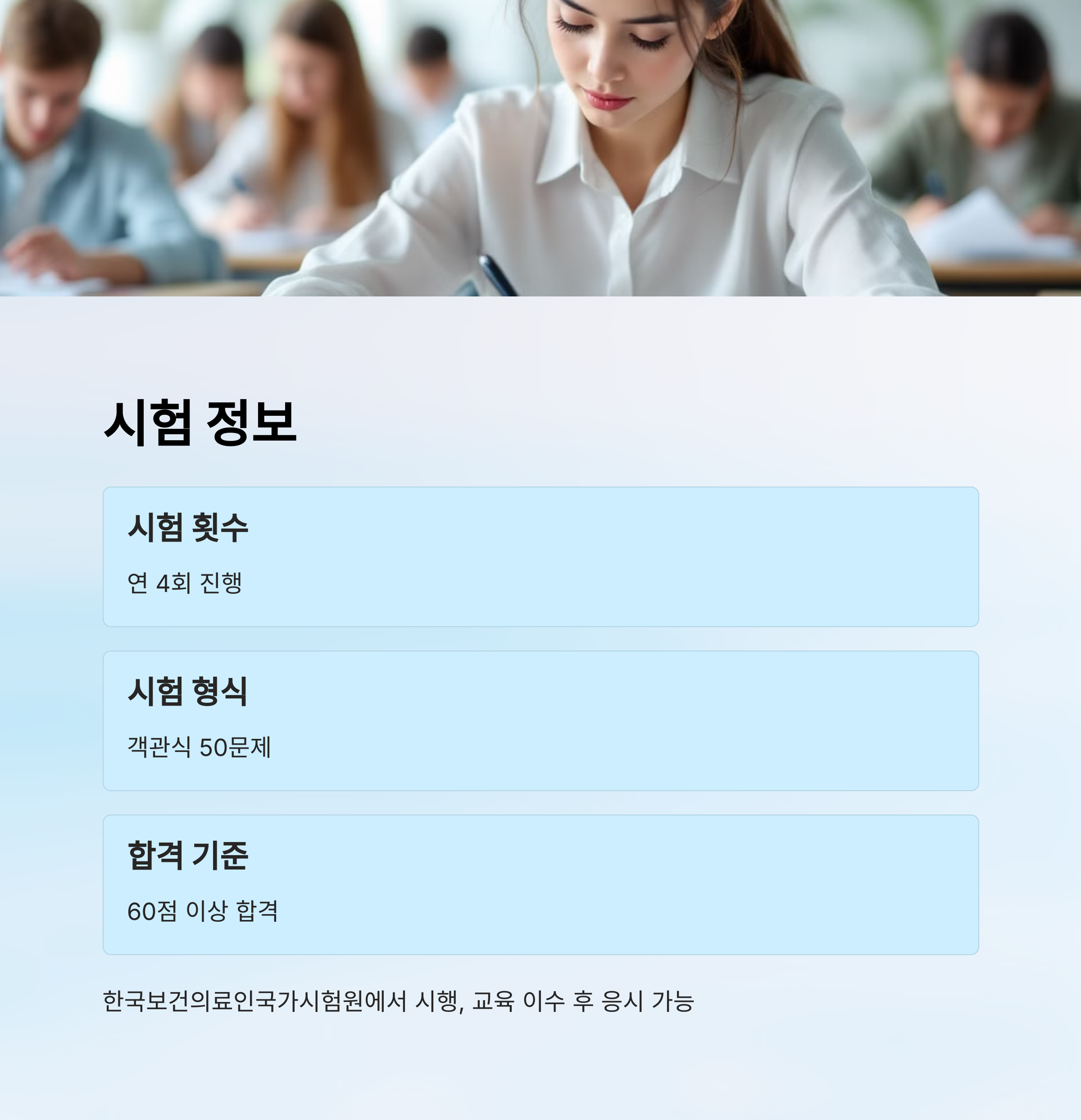 자격증 시험은 보통 연 4회 진행되며, 한국보건의료인국가시험원에서 시행해요.