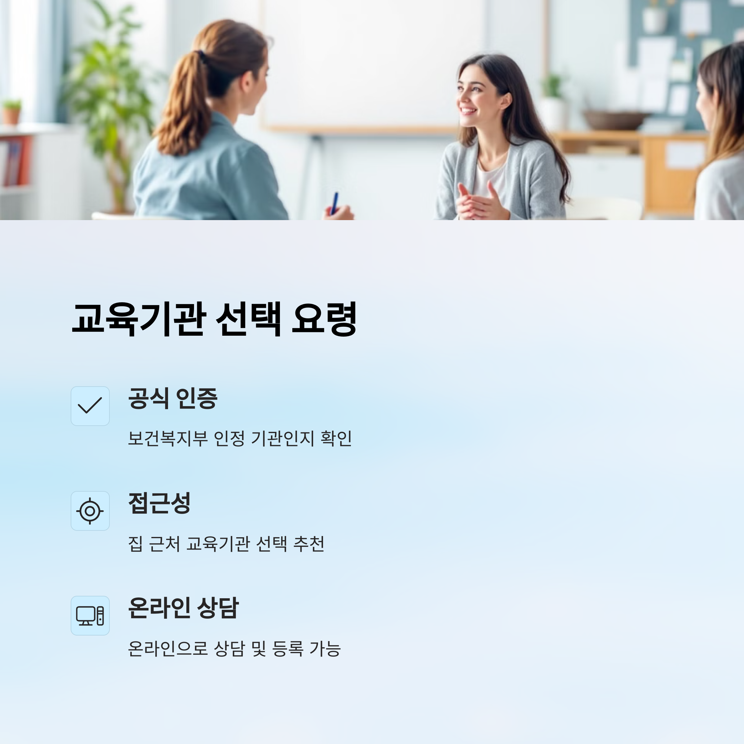 보건복지부에서 인정한 기관인지 꼭 확인하셔야 하고, 이왕이면 내 집 근처에 있는 교육기관을 고르시는 게 좋아요.