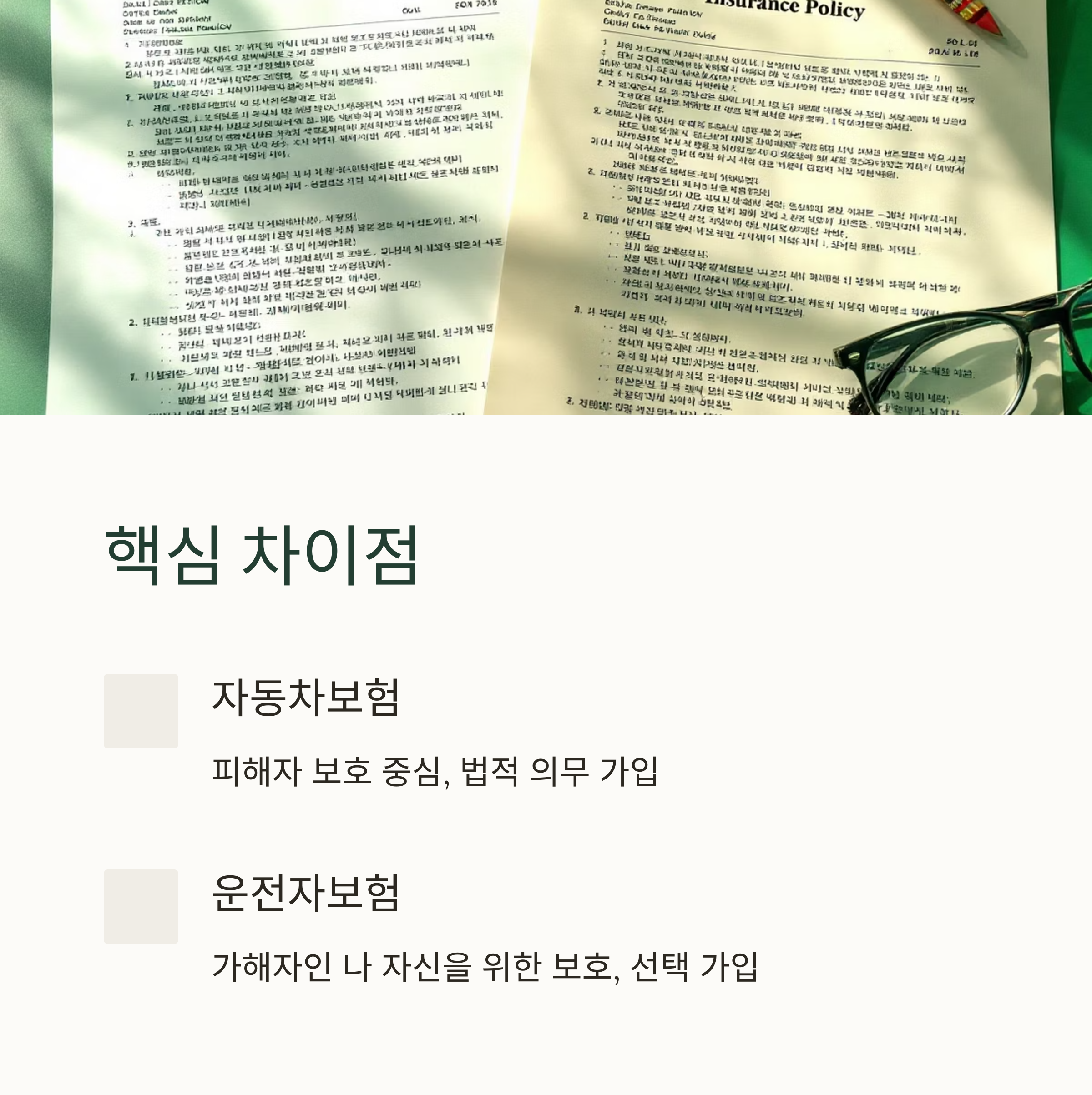 두 보험 다 운전할 때 필요하다는데, 도대체 뭐가 어떻게 다른 걸까요?
