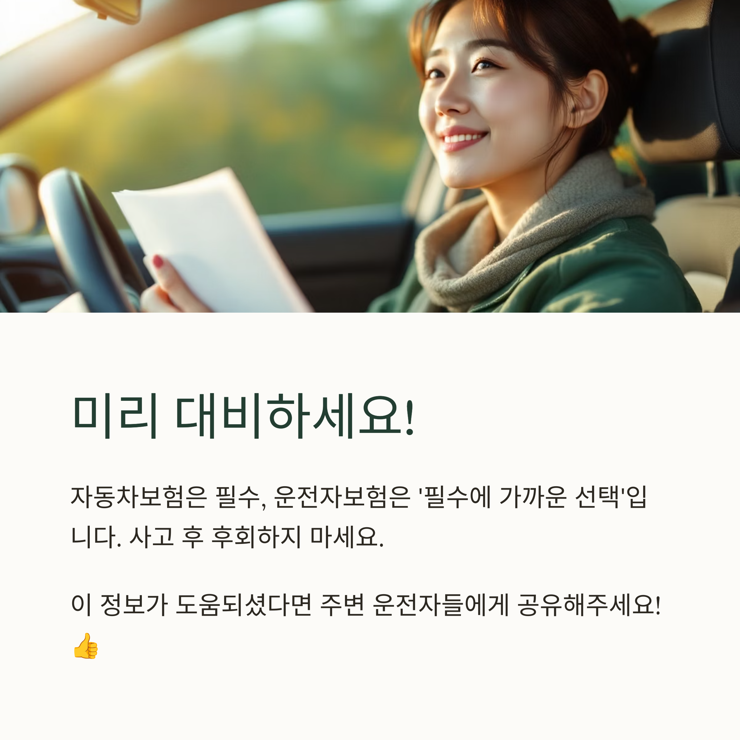 다음 글에서는 운전자보험 가입 시 꼭 체크해야 할 항목들을 다뤄볼게요!