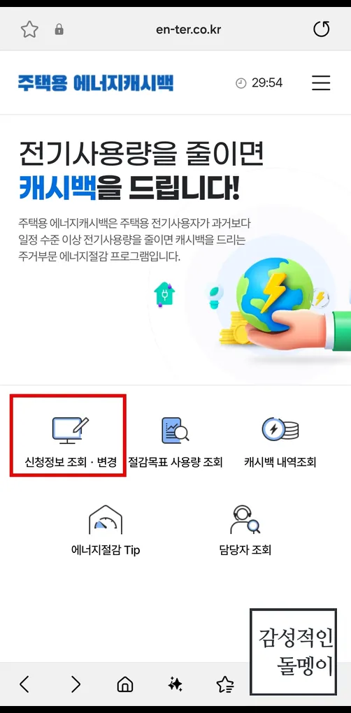 - 한전 에너지캐시백 공식 웹사이트 접속