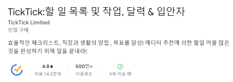 TickTick은 시간 관리까지 함께 하고 싶다면 강력 추천하는 앱이에요.