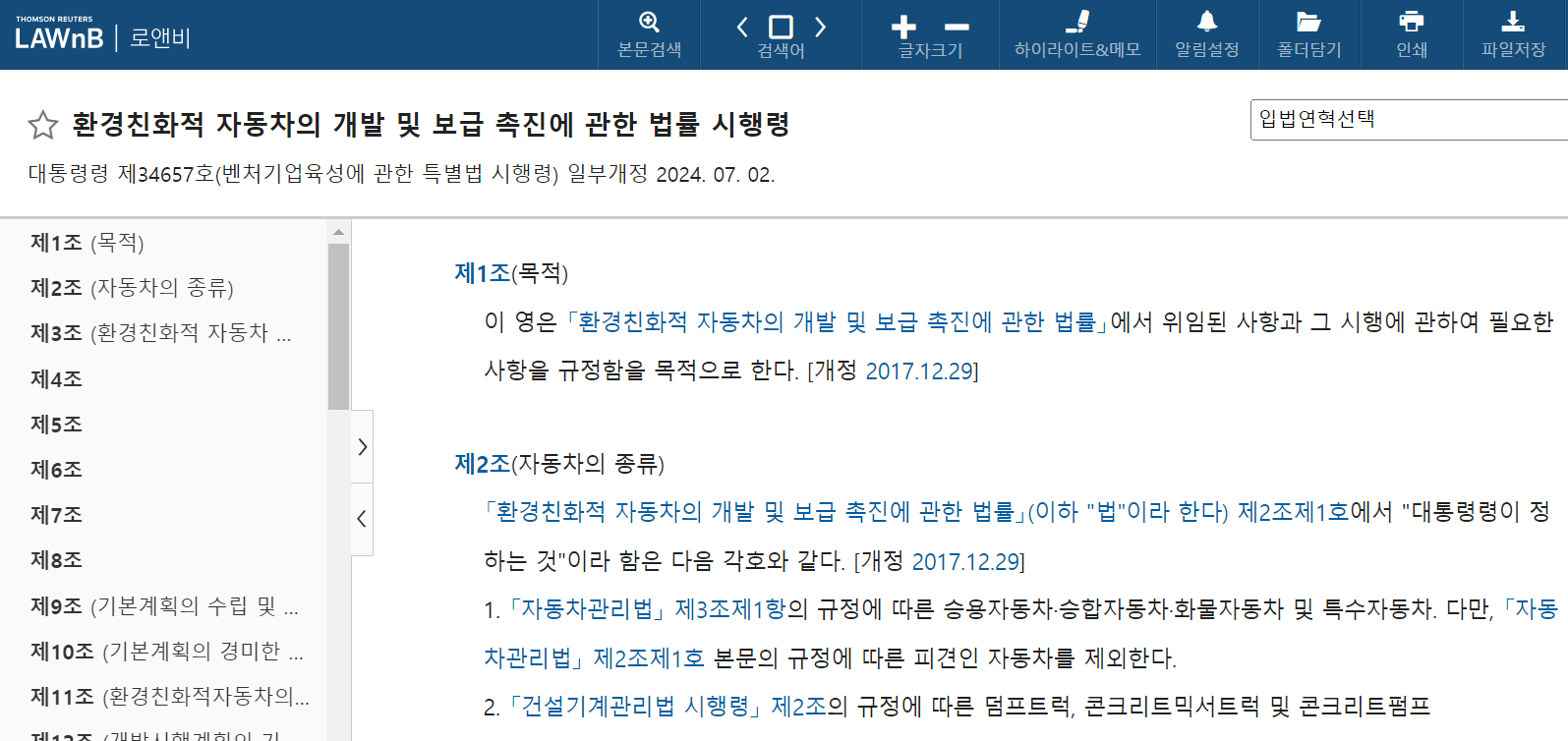 환경친화적 자동차의 개발 및 보급 촉진에 관한 법률 시행령 확인하기