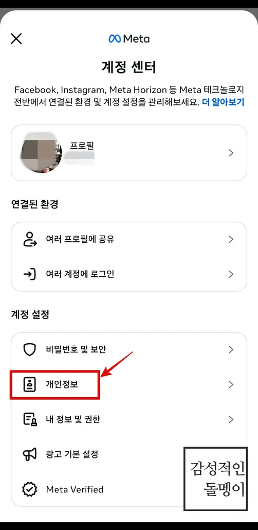 - 계정 센터 → 개인 정보 → 계정 소유권 및 관리 클릭