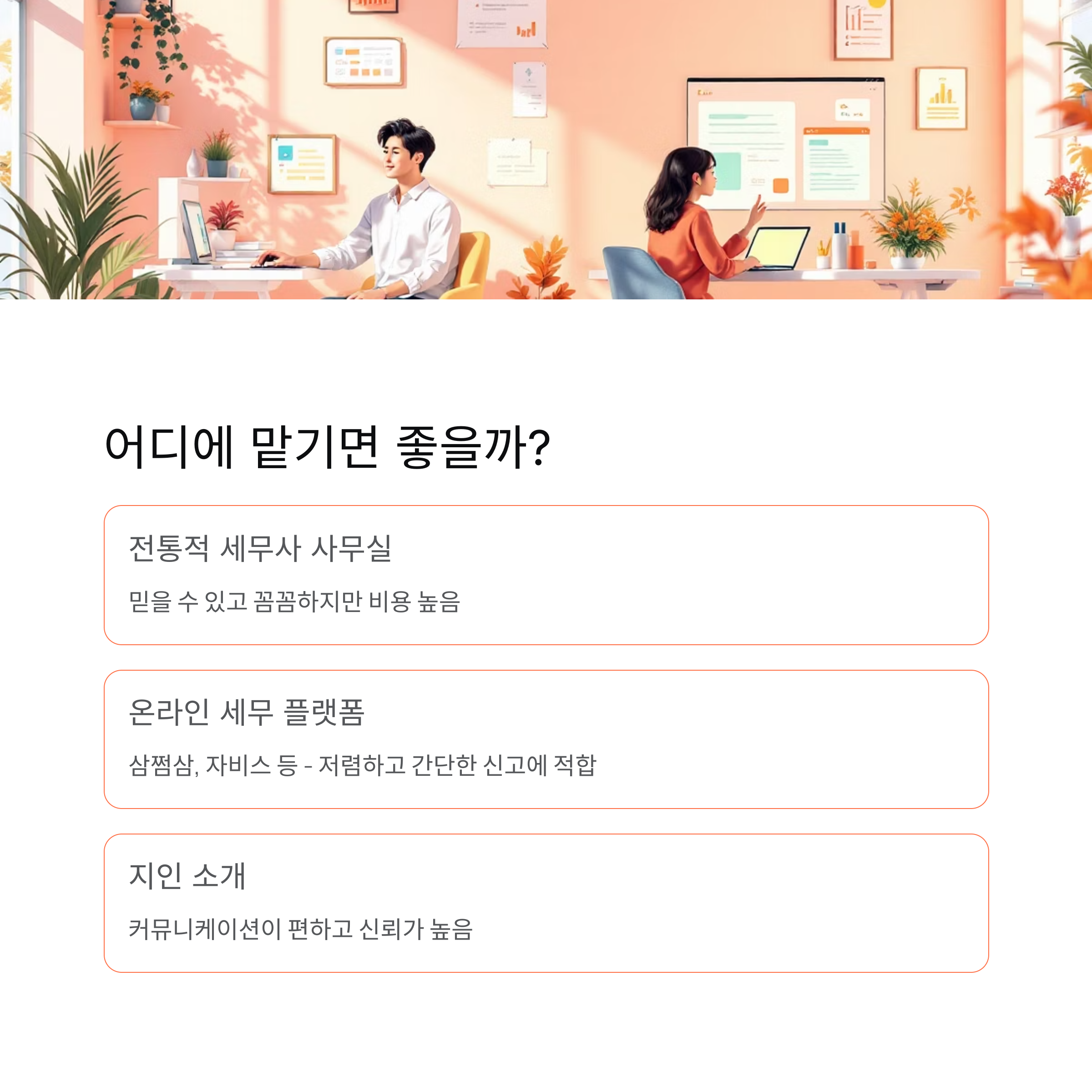 직접 아는 세무사 또는 소개받은 곳은 커뮤니케이션이 편하고 신뢰가 가죠.