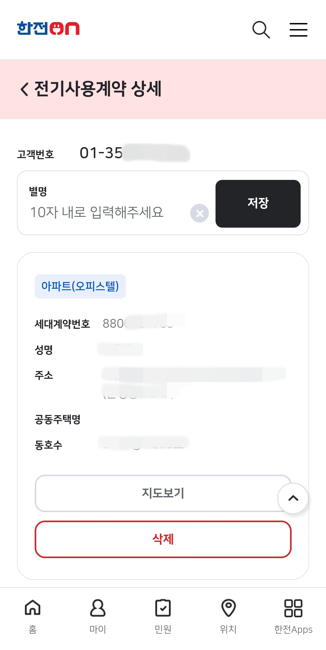 간혹 전기요금이 관리비에 포함되어 청구되는 아파트 거주 고객은 개별 고객번호가 없으므로‚ 해당 아파트 관리사무소로 문의하시기 바랍니다