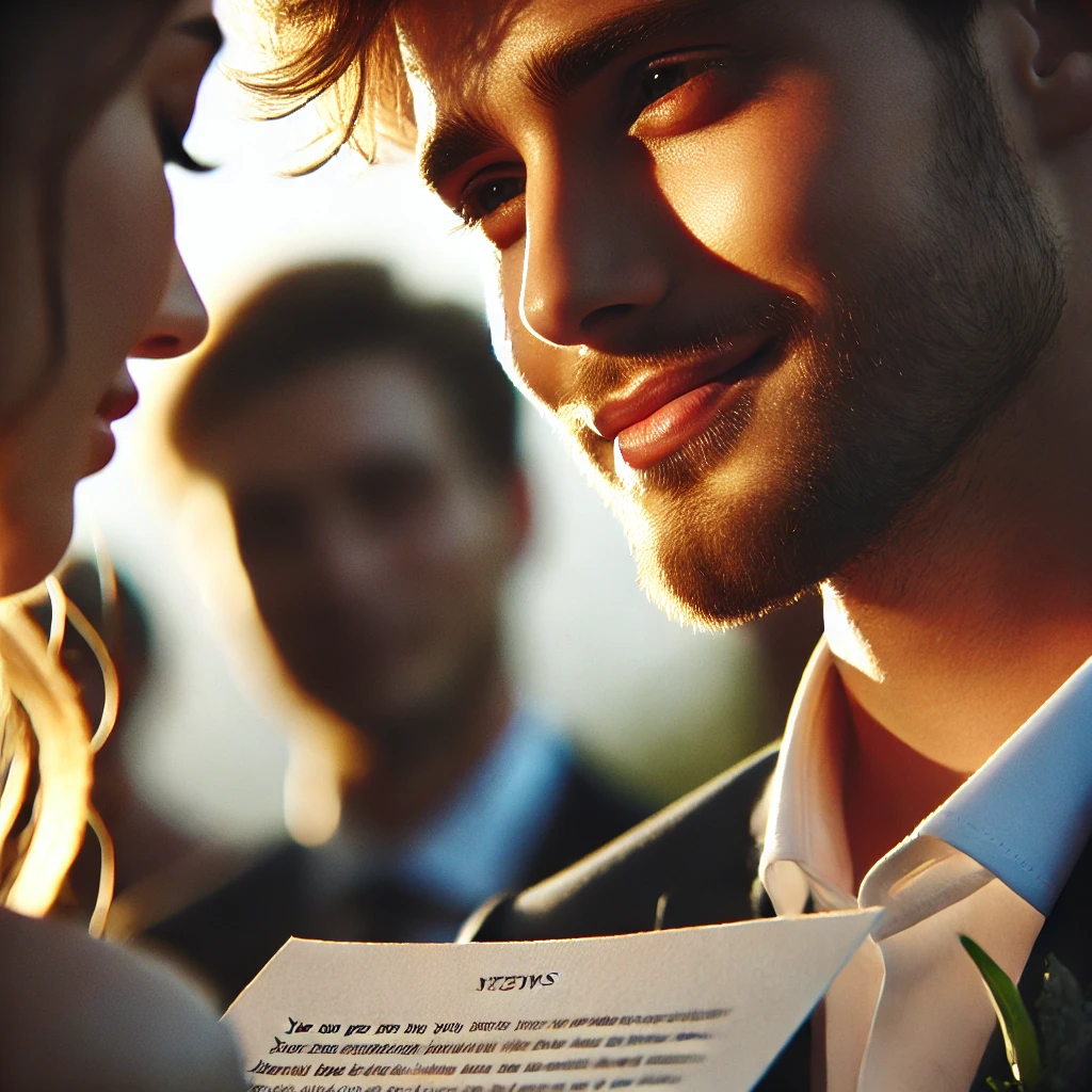 주례님의 축복 아래, 나는 당신과 나만의 특별한 약속을 하고자 합니다. 우리의 이야기는 평범하지 않고, 그만큼 이 서약도 우리만의 색깔을 담아내고 싶습니다.
