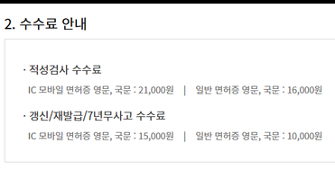 수수료 및 영문운전면허증